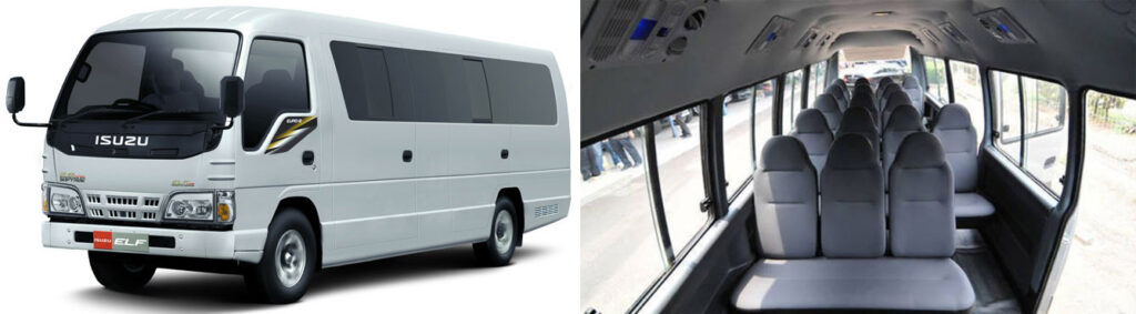 Jenis Mini bus (Elf Long) dengan kapasitas 19 orang penumpang.